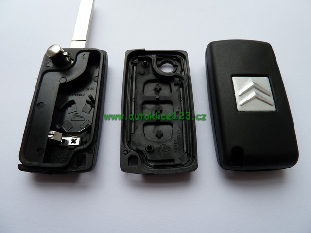 Obal auto klíče CITROEN 3 tlačítka s držákem baterie v obalu.